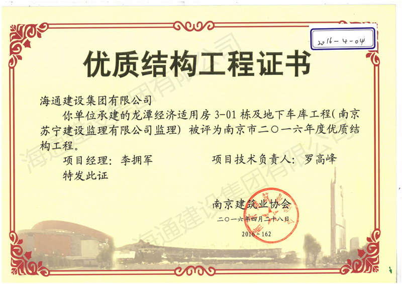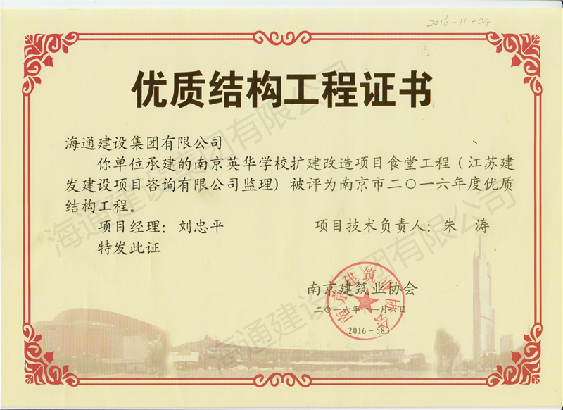 南京市優質結構2016南京英華學校擴建改造項目宿舍樓工程