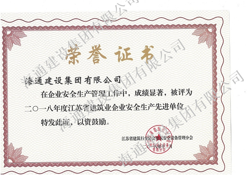 江蘇蘇建筑業(yè)安全生產(chǎn)先進單位2018