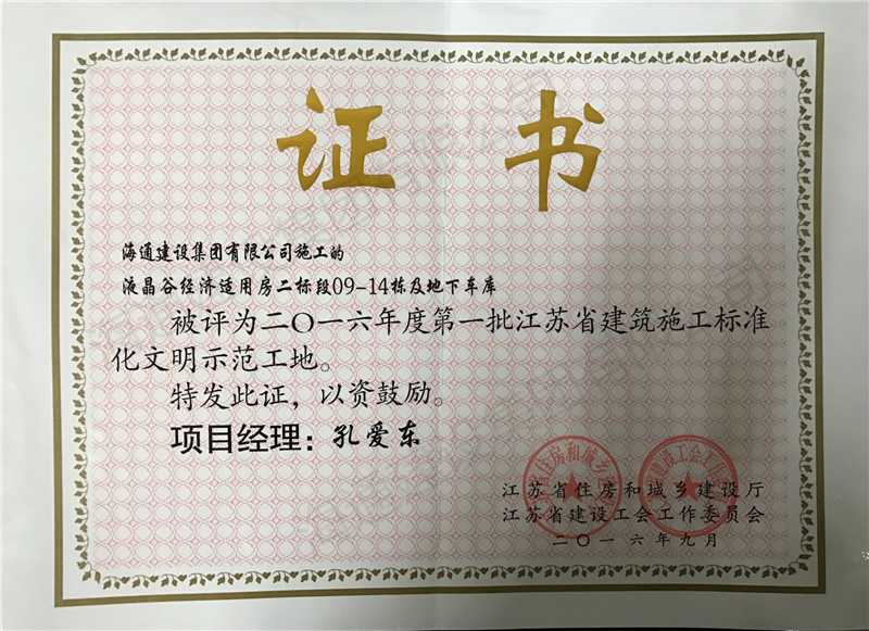 江蘇省文明工地2016液晶谷經濟適用房二標段09-14棟及地下車庫