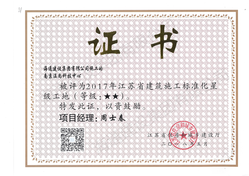 江蘇省文明工地2018南京溫尚科技中心