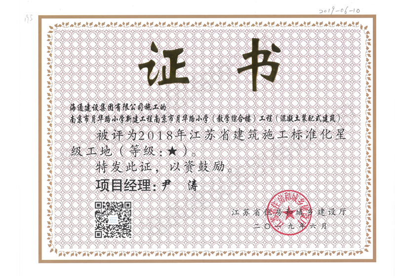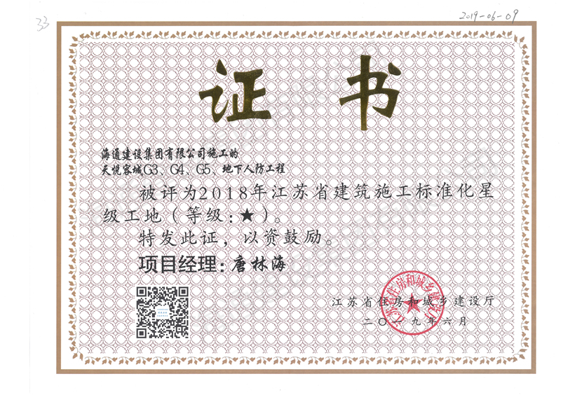 江蘇省文明工地2019天悅容城
