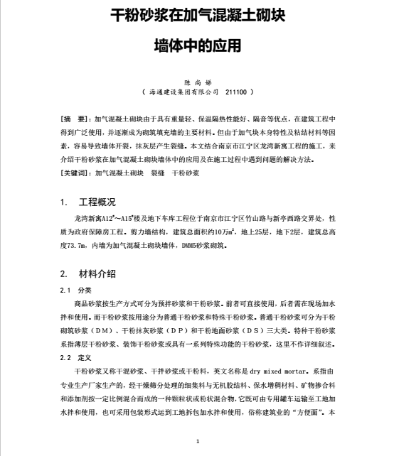 干粉砂漿在加氣混凝土砌塊墻體中的應用