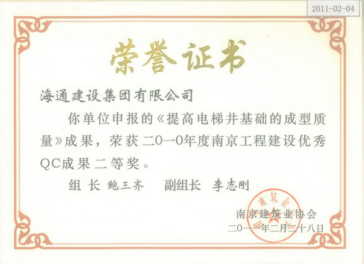 南京工程建設(shè)優(yōu)秀QC成果二等獎(jiǎng)