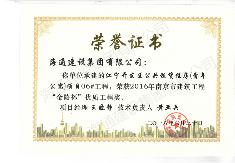 南京市金陵杯2016江寧區開發區公共廉租房項目06#工程