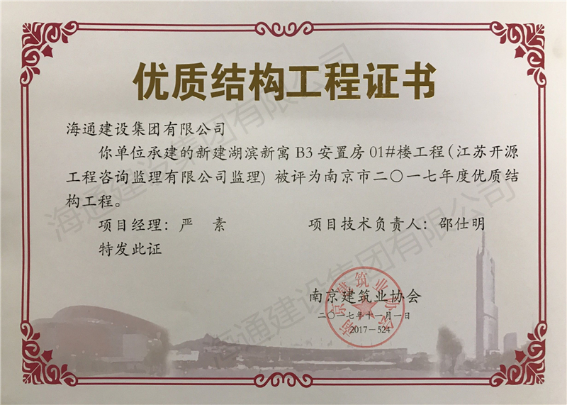 南京市優質結構2017新建湖濱新寓B3安置房01#樓工程