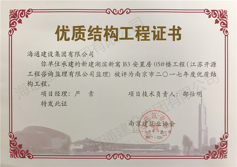 南京市優(yōu)質(zhì)結(jié)構(gòu)2017新建湖濱新寓B3安置房05#樓工程