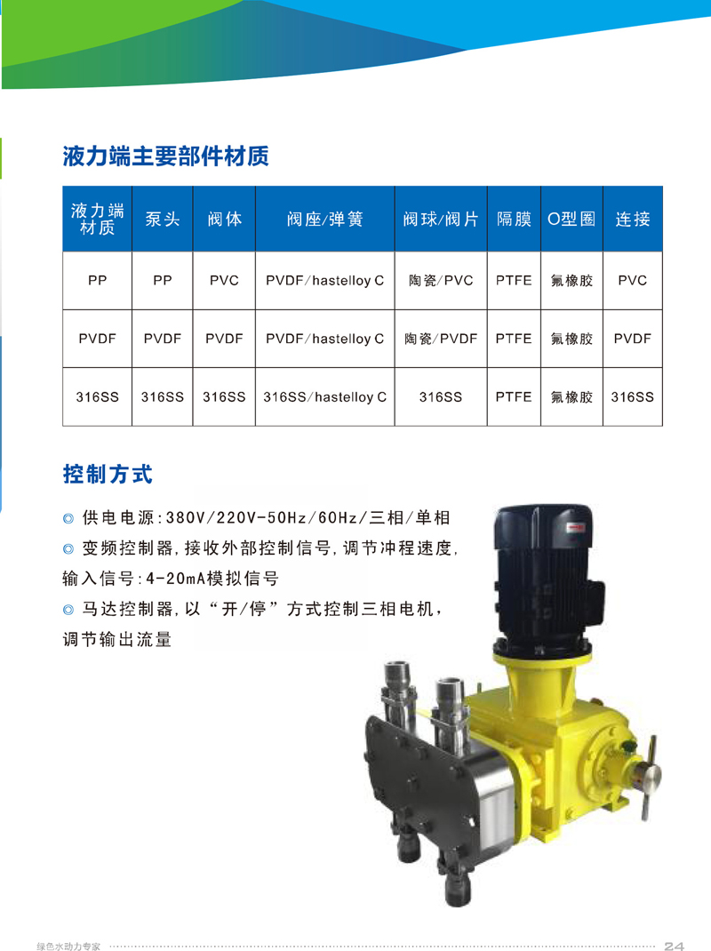 2、機(jī)械驅(qū)動(dòng)隔膜,物料側(cè)無隔膜護(hù)盤,便于物料通過,PP、PVDF、316SS等多種泵頭材質(zhì)可選,自清洗單向閥結(jié)構(gòu)。