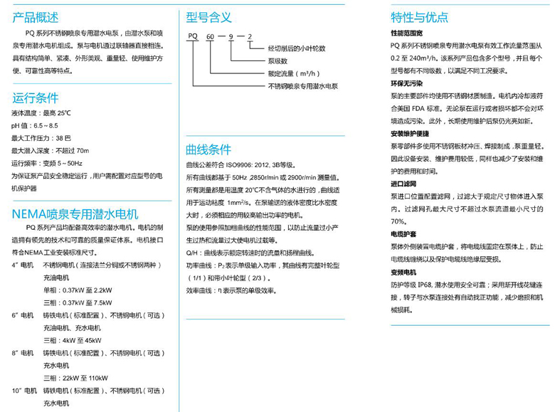 南方PQ不銹鋼噴泉專用潛水電泵,由潛水泵和噴泉用潛水電機組成。泵與電機通過聯(lián)軸器直接相連。適用于景觀音樂噴泉專用。